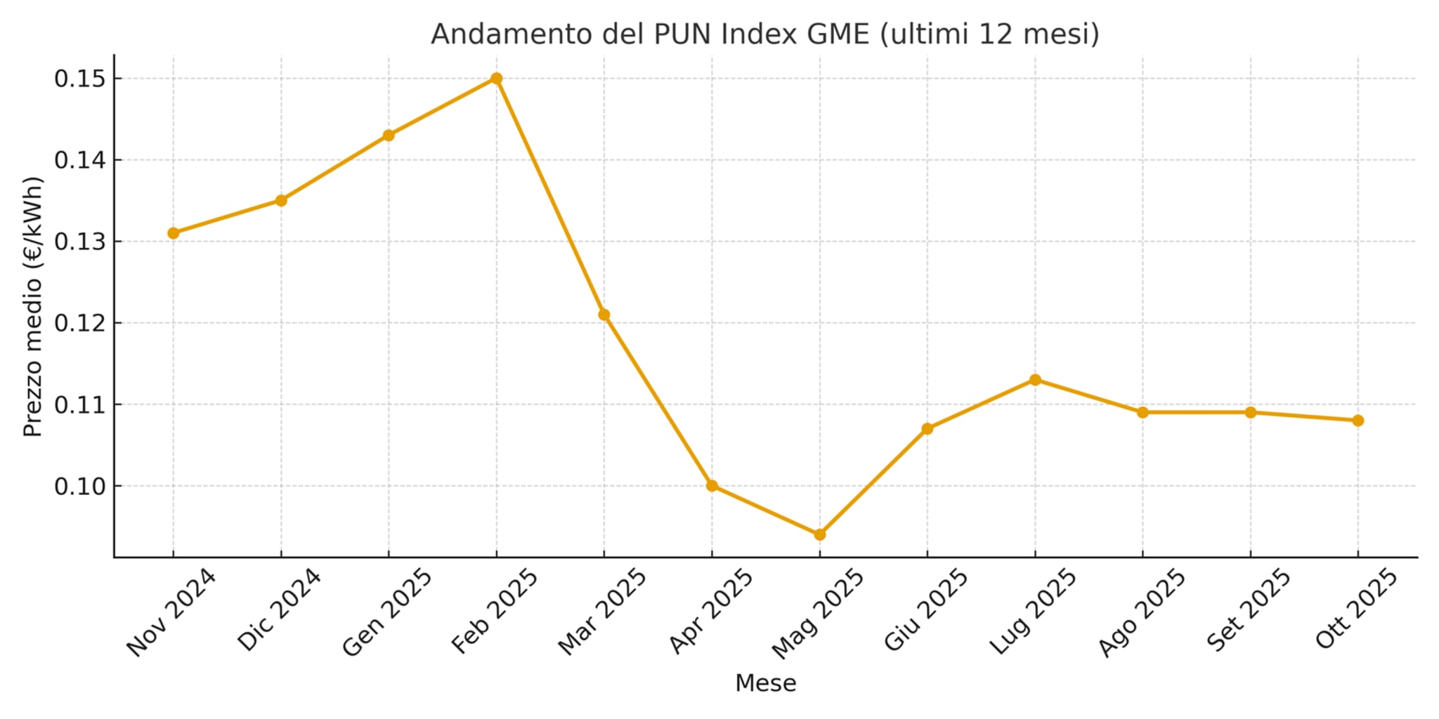 Il valore, influenzato da fattori come costi del gas, fonti rinnovabili e scenari geopolitici, ha raggiunto un picco nel 2022 ma tende alla normalizzazione. I clienti con offerte a prezzo variabile seguono direttamente l'andamento del PUN.