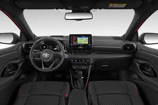 Gli interni della Yaris sono progettati per offrire massimo comfort e funzionalità. I materiali di alta qualità e le finiture curate creano un ambiente accogliente, mentre l'ampio display centrale offre un accesso intuitivo a tutte le funzioni di infotainment. Lo spazio è ottimizzato per garantire comodità sia al conducente che ai passeggeri.